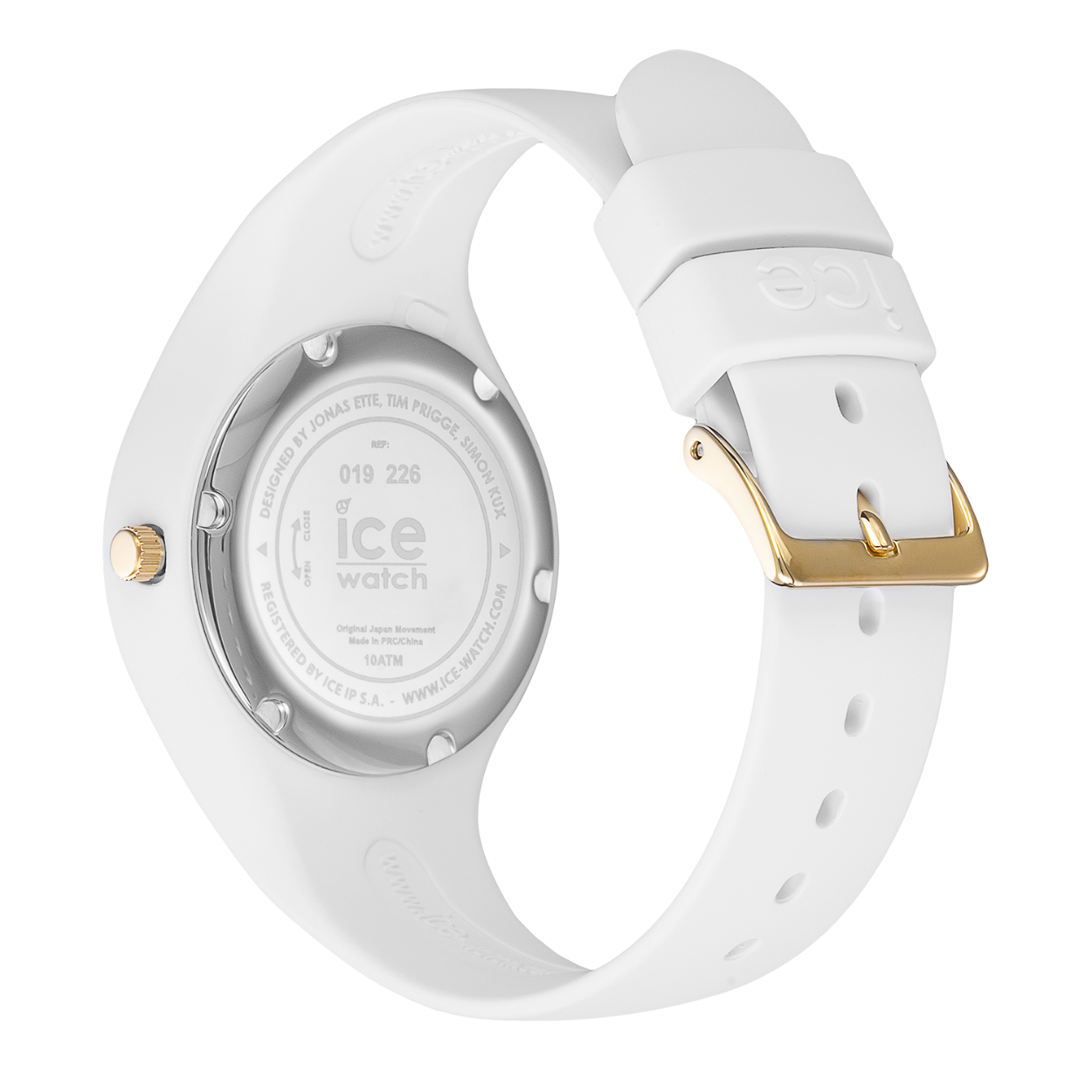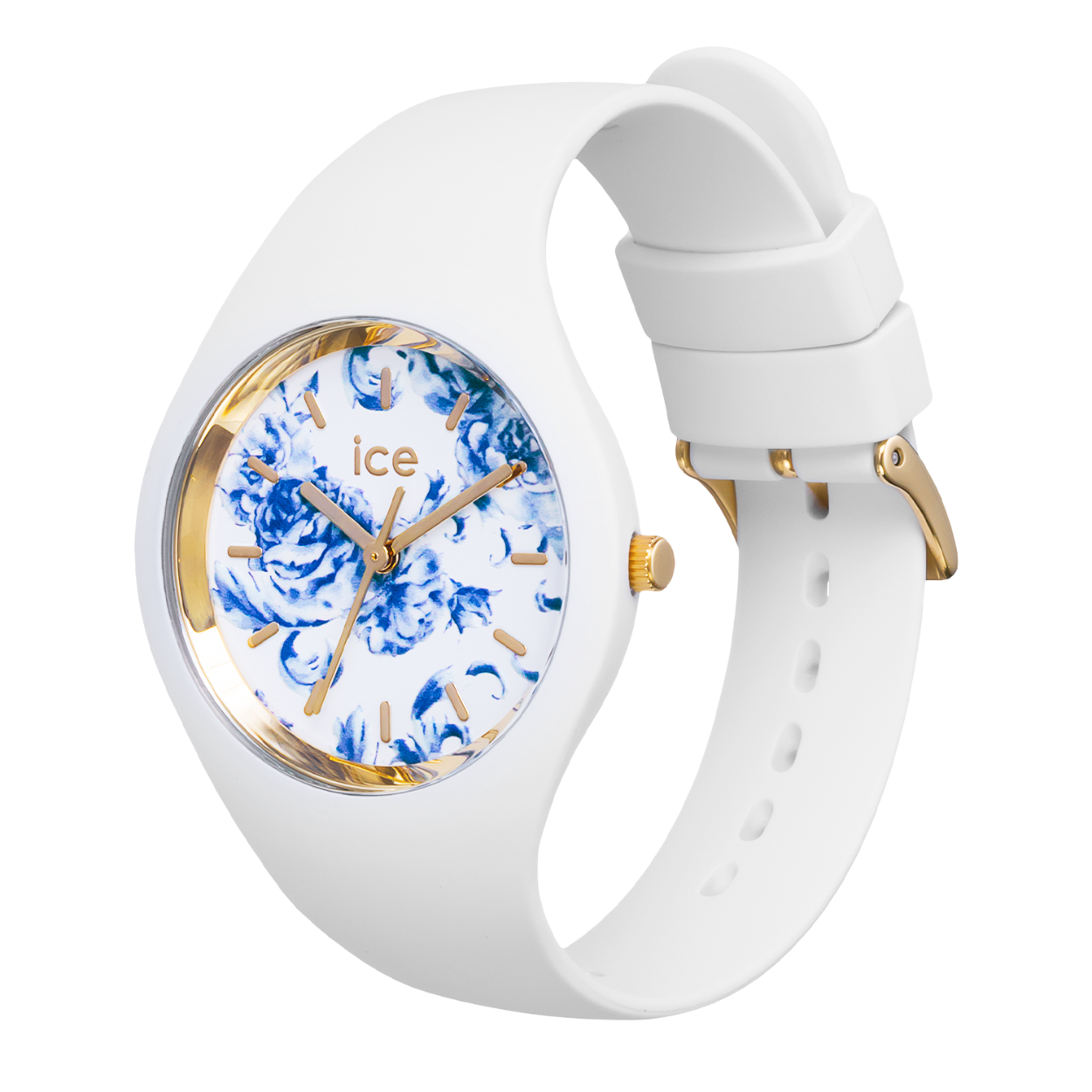 Een mooie Ice Watch uit de Ice Blue reeks, afgewerkt met witte siliconen band en blauwe bloemen op de witte wijzerplaat. De gouden details maken het een stijlvol uurwerk, passend bij elke outfit. Het uurwerk is 10ATM waterdicht.