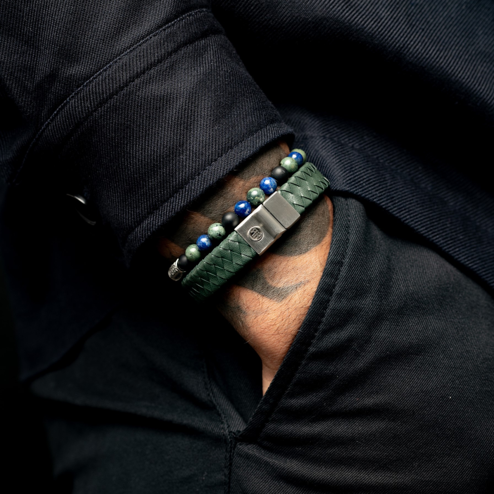 Armband van het merk Rebel & Rose. De armband heeft een hoogwaardige elastische stretch koord, met 6mm van Ryolite, Lapis Lazuli, Onyx.